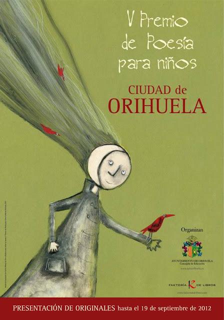 La Concejalía de Educación del Ayuntamiento de Orihuela (Alicante) y Faktoría K, sello editorial de Kalandraka, convocan el V Premio de Poesía para Niños Ciudad de Orihuela, un certamen de ámbito internacional con una dotación de 7.000 euros. El plazo de presentación de los trabajos finaliza el 19 de septiembre de 2012 a las 12:00 horas y el fallo del jurado se dará a conocer en torno al 30 de octubre, fecha que coincide con el aniversario del nacimiento del poeta oriolano Miguel Hernández.