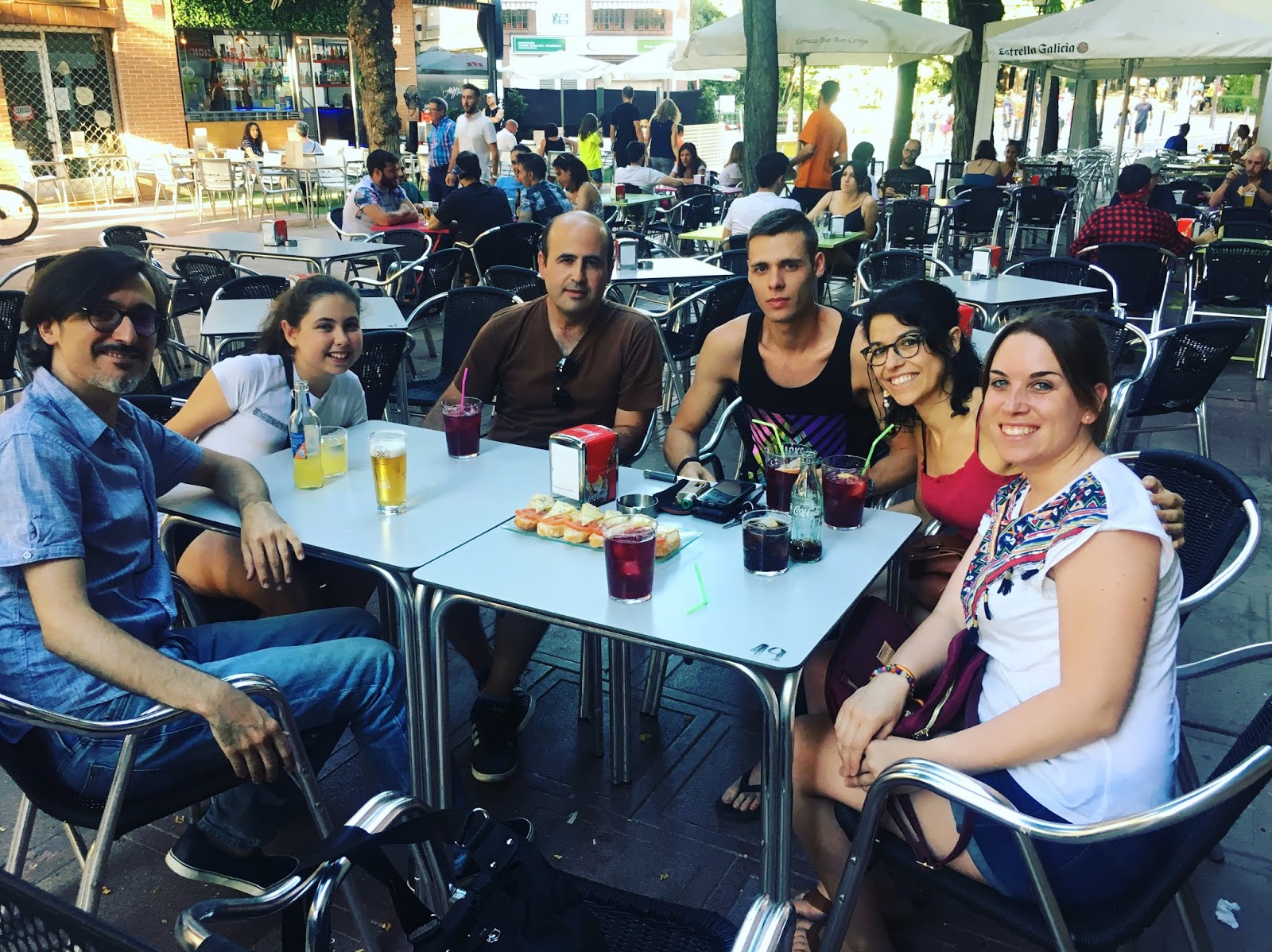 El apartamento está al lado del Hotel AC, pegado vamos, y al lado está el Centro Comercial Alameda, en frente está el Estadio Do Dragao (estadio de fútbol), y ahí mismo hay una parada de metro. (lo cogimos el último día a la vuelta). El apartamento en cuestión estaba en un edificio de No fumadores, un 11 piso, estaba muy moderno y muy bien, pequeñito claro.. el problema es que no tenía Aire Acondicionado, y que los colchones de la cama eran malísimo. Si quitamos esto, por lo demás bien, porque dejabas el coche en el parking y desde ahí podías subir al estudio o al apartamento. Nosotros solo lo cogimos un día para ir a ver un par de pueblos, pero el resto estuvo en el parking. Ahhh que se me ha olvidado... empecemos por el principio..... La distancia entre Alicante y Oporto es de: 9 h 10 min (986,2 km) por A-31Imaginar, 9 horas, parando cada dos como mínimo una media hora, al final se pone en: 12 horas, así que decidimos hacer noche en Guadalajara. Nos fuimos de aquí el domingo día 29 hacía Guadalajara, la verdad es que no hemos tenido apenas tráfico en ninguno de los trayectos que hemos hecho estas vacaciones. Salimos pronto el domingo por la mañana y llegamos a eso de las 11 de la mañana a Guadalajara, fuimos a casa de mis padres, comimos descansamos un rato, y luego quedamos con mis hermanos, y aunque pensábamos tomar solo una cerveza, lo cierto es que nos dieron las 12 de la noche... y al día siguiente nos levantábamos a las 5 para irnos a Oporto. Pero lo pasamos muy bien la verdad.... os pongo una fotito...