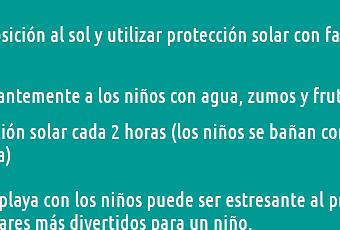 ¿Cuáles son las mejores playas? ¿Qué debo tener en cuenta para elegir dónde ir estas vacaciones con los niños? Y todos los criterios qué deben cumplir estas playas: limpieza, seguridad, actividades, etc. Además de consejos de salud, cómo los limites de tiempo en la exposición al sol para niños de diferentes edades. O algo qué siempre llama la atención y de lo que todos los niños se quejan, el tiempo de digestión y el agua: ¿Cuanto tiempo hay que respetar para hacer la digestión antes de bañarse?. Te sorprenderá saber que en cada país piensan una cosa, nuestro niños tienen razones para quejarse, aunque no tantas cómo los italianos.