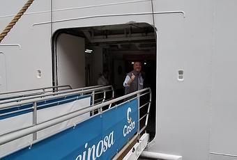 nvitados por el Ministerio de Turismo y como anfitrión el Dr. Carlos Pera Apud director de Aeromundo representante para Uruguay de Costa Cruceros, navegamos en el Costa Fascinosa que es una verdadera obra de arte marítima. Con 290 metros de eslora, 36 de manga, y 13 cubiertas, este gigante de los mares puede albergar hasta 3.800 pasajeros en sus 1.508 camarotes. Una tripulación de 1.100 personas siempre dispuestas a asistir con una sonrisa. La decoración, inspirada en el teatro, la ópera y el cine, ofrece un ambiente sofisticado y culturalmente enriquecedor. Fotos de los años 60 y 70 del cine italiano en todos los pasillos y espacios de ascensores del crucero.