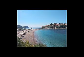 Sveti Stefan y Milocer. Esta es una de las imágenes más famosas de Montenegro la isla de Sveti Stefan. Una isla privada ocupada por varios hoteles con oferta dirigida a muy poquitos mortales. A la isla no puedes acceder y de vez en cuando un helicóptero aterriza cerca para llevar o traer nuevos clientes. A los pies de la isla hay dos playas una privada que obligan a coger tumbona y sombrilla por 100€. Dirigido a los clientes del hotel y otra al lado abierta al resto de mortales. De piedra con agua transparente pero muy fría.Nosotros dejamos el coche en el primer punto de información que vimos en cuanto dejamos la carretera, e hicimos el camino hasta Sveti Stefan andando. Es un paseo de unos 20min pero agrade le y con bastante sombra. Te permite pasar por la playa de milocer, otra playa exclusiva a 120€ la tumbona, rodeada de un césped esquisitamente cuidado. La alternativa si no quieres hacerlo andando es llegar con el coche al parking de la misma playa de Sveti (2€ la hora).