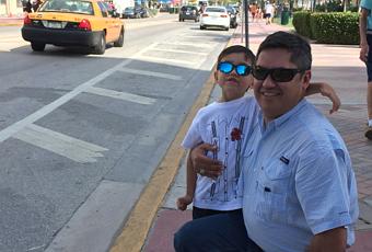 Papá y Gabriel posando en South Beach antes de ir a abordar.