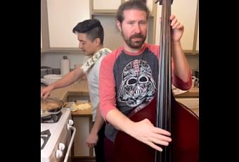 Toca con su amigo Stefano (@stefanomusic), que se afana en la cocina y que de repente se arranca a cantar muy bien. (No puedo insertar el vídeo. Por favor, vedlo aquí).