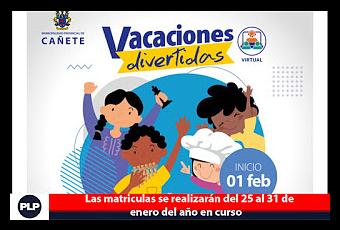 Con la finalidad de impulsar el desarrollo de talentos y habilidades de los niños, niñas y jóvenes de la ciudad de San Vicente, la Municipalidad Provincial de Cañete (MPC) a través de la Gerencia de Desarrollo Social y Humano, iniciara el 01 de febrero el programa de “Vacaciones útiles 2021”, edición virtual.