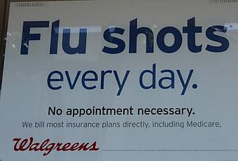 Por eso, aunque aquí llame la atención, es muy habitual ver en los supermercados y centros de venta de medicamentos (tipo Walgreens o CVS) este cartel como reclamo para la vacuna de la gripe: