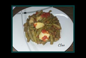 Las judías verdes o vainas como las llamamos e mi tierra, no debemos consumirlas crudas. Además de resultar indigestas poseen una sustancia tóxica conocida como faseolina que se elimina durante la cocción. Antes de cocinar las judías verdes es necesario separar el filamento longitudinal que presentan algunas variedades. A continuación, se lavan y ya están listas para ser cocinadas. Si se cuecen, hay que introducirlas en el agua hirviendo y añadir la sal casi al final de la cocción. Así se evita que las judías se endurezcan. No se deben cocer en exceso porque perderían gran parte de sus nutrientes. Son suficientes quince minutos para las variedades más finas y veinticinco para las gruesas. (FUENTE)Yo en esta ocasión las he con un sofrito de tomate y pimentón...Vamos a ver cómo...