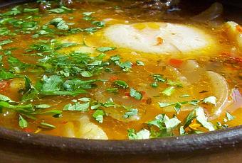 - En una olla grande colocar la mezcla anterior y el caldo; llevar a ebullición a fuego bajo y cocinar de 15 a 20 minutos.