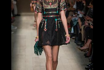 Me ha sorprendido mucho la nueva colección de Valentino. Bien es cierto que desde que Pierpaolo y Maria Grazia son los diseñadores de la marca, ésta ha rejuvenecido notablemente. En mi opinión a la vez que ha rejuvenecido ha ido perdiendo la elegancia que siempre ha acompañado a la marca. Esta colección mezcla piezas lisas de un solo color de a prendas estampadas con detalles étnicos. Fuente: Style