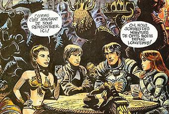 Aunque,visto lo visto lo que se cuenta en ese articulo,decir que se inspiro es quedarse en algo muy políticamente correcto,porque lo que se muestra en las imágenes del articulo,datos en mano,es que mas que inspiración lo que hubo es papel de cebolla y unos cuantos retoques.No es raro que esto pase,y dentro de lo que cabe tampoco es algo que pudiéramos decir que nos extrañase nada.No es la única inspiración de la saga,como por ejemplo las películas de Akira Kurosawa,pero mientras que en el caso del director japones no se tuvo empacho en decirlo,mas aun proclamarlo,aquí se niego constantemente y la verdad es que negarlo es un tanto ridículo,por lo evidente que se ve.Decir plagio en ciertas partes creo que puede ser realmente excesivo,aunque en la de la carbonita quizás se podría decir sin mucho reparo.Pero en otras,las similitudes son claras y el negarlo constantemente no tiene sentido,como seria negar el parecido entre dos mellizos que se parecen.Tal vez,George Lucas se haga el loco al respecto para evitar que los autores galos tengan tentaciones de iniciar procesos judiciales por plagio y temas de derechos de autor,aunque estos no parece que estén muy dispuestos a iniciar una guerra.Al menos judicial,que algunos dardos envenenados o pellizcos intencionados,como la imagen que abre la entrada no se han podido resistir a hacer los autores.