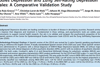 Un estudio de validación compartivo Ruiz-Grosso, P; Loret de Mola, C; Vega-Dienstmaier, J; Arévalo, J. y col. PLoS ONE 2012; 7(10): e45413. doi:10.1371