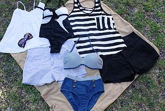 Musculosa -Zucca-, Remera rayada -Checa-, Short negro -María Passoni-, Short mil rayitas -Akiabara-, Enterizo y Bikini retro -ambos by Key Whosse-, Gafas -Daniel Cassin-.