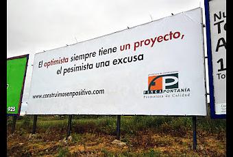 Otro agradable ejemplo nos lo ha proporcionado Finca Pontanía con su campaña de vallas. Esta vez no por la estética, evidentemente, sino por su sencillez y, sobre todo, atrevimiento en un sector también manido por sus típicos códigos de comunicación promocionera propios de gran superficie.
