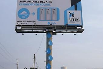 La utec, Universidad de Ingeniería y Tecnología de Lima (Perú), ha creado una valla publicitaria que tiene una particularidad: produce agua potable a partir de la humedad del aire.