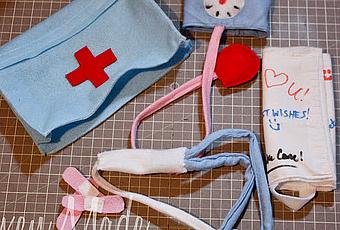 ¿Quién no ha jugado a médicos alguna vez? Es uno de los juegos a los que más recurren los niños y puede ser muy divertido, sobre todo, si tienes un "instrumental médico" adecuado. Me ha gustado mucho este Kit de Doctor que hemos visto en VixenMade, un blog donde encontraréis el tutorial para hacer este completo maletín de doctor, realizado todo con fieltro. Tiene multitud de detalles: el maletín, el aparato para tomar la tensión, el estetoscopio, tiritas, escayola...