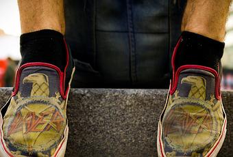 Volviendo al suelo y a las Vans de Oscar, que como podéis ver son una edición de Slayer. La marca de skateboard siempre ha apoyado a las bandas más duras del planeta, sacó su edición limitada en el 2009 para los fans más acérrimos de la banda. Fue una colección completa de 4 modelos clásicos.