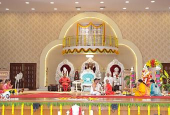 La Puja había comenzado a las 9 am de la mañana, y después de la llegada de Bhagavan, la parte final de la Puja, que incluía, el hilo amarillo sagrado, se llevó a cabo en Su presencia divina.