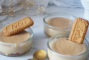 - Pica unas galletas Lotus, pon en el fondo de los vasitos las galletas picadas, añade la crema de galletas, mete los vasitos a la nevera durante un par de horas.