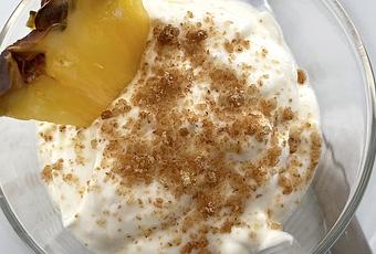 - 1 galleta digestive hecha polvo y trocitos de piña para adornar