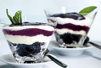 Cocemos todos los ingredientes del coulis a fuego lento durante 20 minutos. Trituramos, colamos y dejamos enfriar. En un vaso de cristal colocamos una base de moras frescas, encima una capa de helado y añadimos un poco de coulis de mora. Rellenamos con el yogur griego y terminamos con el resto de coulis. Decoramos con menta fresca.