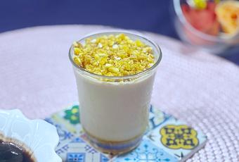 - En cada vasito se vierte una cucharada de sirope de agave y enseguida se pone encima aproximadamente unos 75 gr de la mezcla del vaso.
