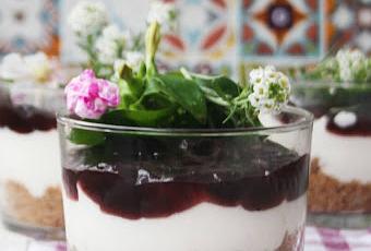 En la receta vasitos de tarta de queso no uso nada de azúcar añadida, el yogur ya contiene azúcar y la mermelada también; si te gustan las preparaciones muy dulces, ponle una o dos cucharadas a la crema de queso cuando la batas.