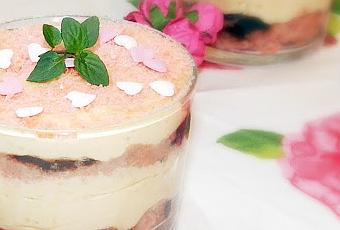 Cortamos en pedacitos las galletas biscuit rose de Reims y utilizamos la mitad para rellenar los fondos de los vasitos. Le añadimos una capa de mermelada de fresa y encima la crema de mascarpone que habíamos reservado. Repetimos la operación con otra capa de galletas remojadas, una capa de mermelada y finalmente otra de crema mascarpone.