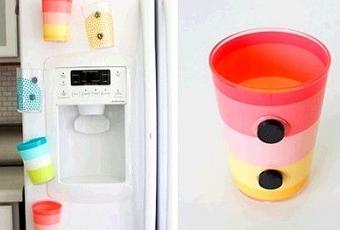 Y si queréis hacerlos en casa solamente os harán falta unos vasos de plástico, imanes (dos por vaso) y pegamento caliente.