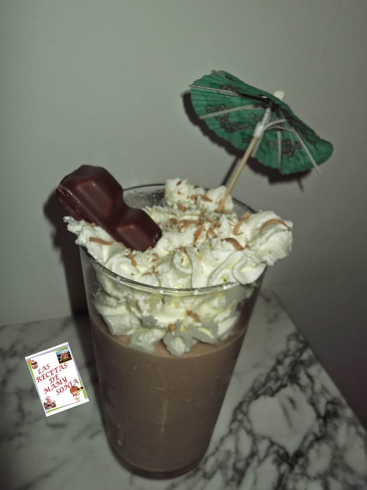 También podemos ponerle nata en spray con el chocolate triturado los chocolates esparcido por la nata y media barrita de kinder