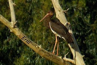 Hoy (19/04/15) en la charca de Gandarias hemos podido disfrutar de la presencia de una inmadura cigüeña negra gracias al aviso de Juanjo Aja.