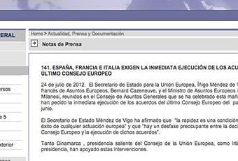 Una nota en la que mienten miserablemente. Un caso de estulticia supina, una vergüenza para este país. Porque dicen que Francia e Italia piden junto a España algo que a los pocos minutos no han tardado, ambos gobiernos europeos, en desmentir. Francia e Italia se han quedado sorprendidas y han confirmado que no han hablado de ese tema y que están alucinados y han sentido estupor al ver el comunicado.