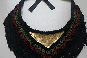 Voudetroula, nos presenta nuevos collares baberos...Flecos, piedrecitas, y hasta una flor como en el último.La manera mas austera de darle vidilla a un viejo jersey o una camiseta lisa ..