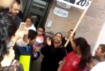 Con una manta y en las instalaciones de dicha dependencia, los vecinos mostraron su inconformidad por la obra que tiene ya dos años sin terminarse.