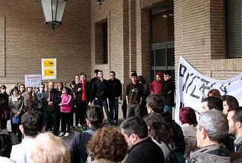 Después de la concentración que se realizo frente al Ayuntamiento de Zaragoza el miércoles 28 de mayo contra la concesión de la licencia de derribo de la fundición Averly, personas independientes junto a organizaciones sociales y políticas han realizado una asamblea improvisada en los porches de la misma institución.