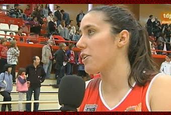 Vega Gimeno atiende a Teledeporte al final del partido.