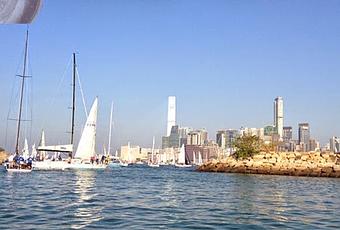La carrera duró varias horas y acabamos extenuados los cinco componentes del equipo, lo curioso es que siendo yo completamente nuevo, nuestro captán era muy experimentado y por ello acabamos quedando terceros en nuestra categoría en la cual competían unos 15 barcos! Aunque no lo supimos hasta unos días después, el mejor premio fue volver a ver los grandes edificios del otro lado de la bahía (imag04) cuando por la tarde volvíamos al Yacht Club de nuevo.