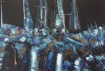 " Veleros noctámbulos en el puerto " 040 x 030 cm. 2014 Ó...