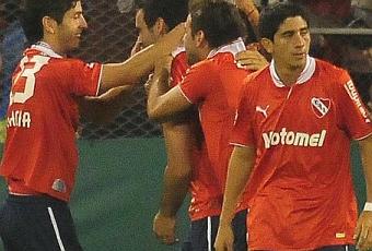 Los jugadores de Independiente abrazan a Parra, quien abrió el marcador.