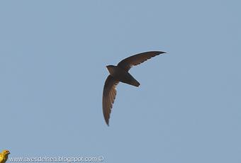 Lo despejado del lugar me ayudó un poco a la hora de localizar estas escurridizas y veloces aves a través del lente de mi cámara y al menos dos imágenes pude rescatar luego de varios errores de enfoque; para que tengan en cuenta son aves que miden apenas 11 centímetros de longitud que vuelan sin un patrón definido, con movimientos erráticos con el simple objetivo de atrapar insectos en vuelo ya que estos constituyen su principal fuente de alimento.