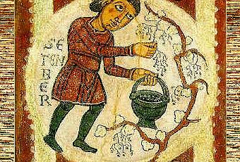 Un techo verde espeso pero luminoso, apuntalado por el peso de los colgantes racimos de perlas doradas y negras. Es uno de los recuerdos que guardo sobre la casa de mis abuelos paternos. Curiosamente, a pesar de lo apetitoso de la imagen, pocas comía… prefería el ácido sabor de los tiernos brotes. Ahora es mi padre el que continúa la tradición con un modesto viñedo, lástima que no tenga imágenes… para la próxima cosecha.La vendimia es la recolección o cosecha de las uvas de vino. No es necesario mencionar que la producción del vino es un arte pulido durante generaciones, factores como las condiciones climáticas, el tipo de uva, los azúcares, ácidos, métodos de vendimia… es necesario tenerlos en cuenta para obtener un vino de calidad. Existe infinidad de información sobre la producción del vino, os remito a ella si os interesa el tema. Este post está dedicado al Paisaje de viñedos que recorre nuestra geografía.En el arte hay un montón de representaciones sobre la acción de vendimiar, el vino, las uvas. Goya, Murillo, Velazquez, San Isidro de León y su Calendario Agrícola:
