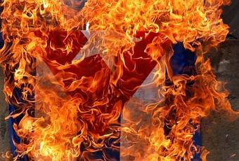 En un vídeo compartido por el periodista Alberto Rodríguez en la red social Twitter se ve a encapuchados verter un líquido combustible al estandarte y prenderle fuego acto seguido.Según el comunicador se trató de un acto contra la injerencia castrista en Venezuela durante la represión desatada contra los manifestantes en Las Mercedes.