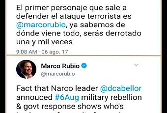 Narco Rubio, alias @marcorubio, lo peor de la política imperial, aparece como el defensor de los terroristas que atacaron Fuerte Paramacay.