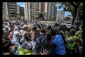 La promesa la cumplieron: decenas de agitadores violentos comenzaron a asediar a los cuerpos policiales en la avenida Libertador (y después en la autopista Francisco Fajardo), buscando iniciar la confrontación. El video y la secuencia de fotografías (tomadas por fotorreporteros de AFP y AP) que presentaremos a continuación evidencian la inexistencia de "manifestantes pacíficos".