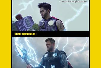 La idea del tráiler es de Jaze Phua, un humorista y aspirante a cineasta de Singapur, fan de Marvel, que aunque ha querido hacer una parodia, no ha dejado de ser fiel a los detalles (por cierto, también, es un acierto poner el original y la copia tan juntitos). Y, claro, te preguntas si hacen falta 314 millones de dólares o se podría con la mitad… o con la mitad de la mitad. Ahora es cuando me dices: oye, Rafa, y lo de los doce dólares. Pues los doce dólares se los gastó en rotuladores para pintarse la barba de tres días que lucen el Capitán América, Iron Man y Thor y en una cartulina para los fondos. Y el resto es imaginación, cuatro días de rodaje y uno de edición, y mucha labia para liar a los amigos en esta superproducción casera.