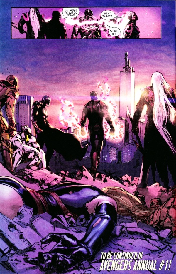 Por mucho que prometiera, esta saga tan especial que Bendis llevaba tiempo planeando no sólo está a años luz de las clásicos como Actos de venganza o Asalto a la mansión, sino que apenas entretiene y no aporta nada al supuesto plan maestro que el mencionado guionista está construyendo. Por suerte no falta demasiado para el siguiente evento editorial, Avengers vs. X-Men, que de momento sí que está convenciendo a los lectores.