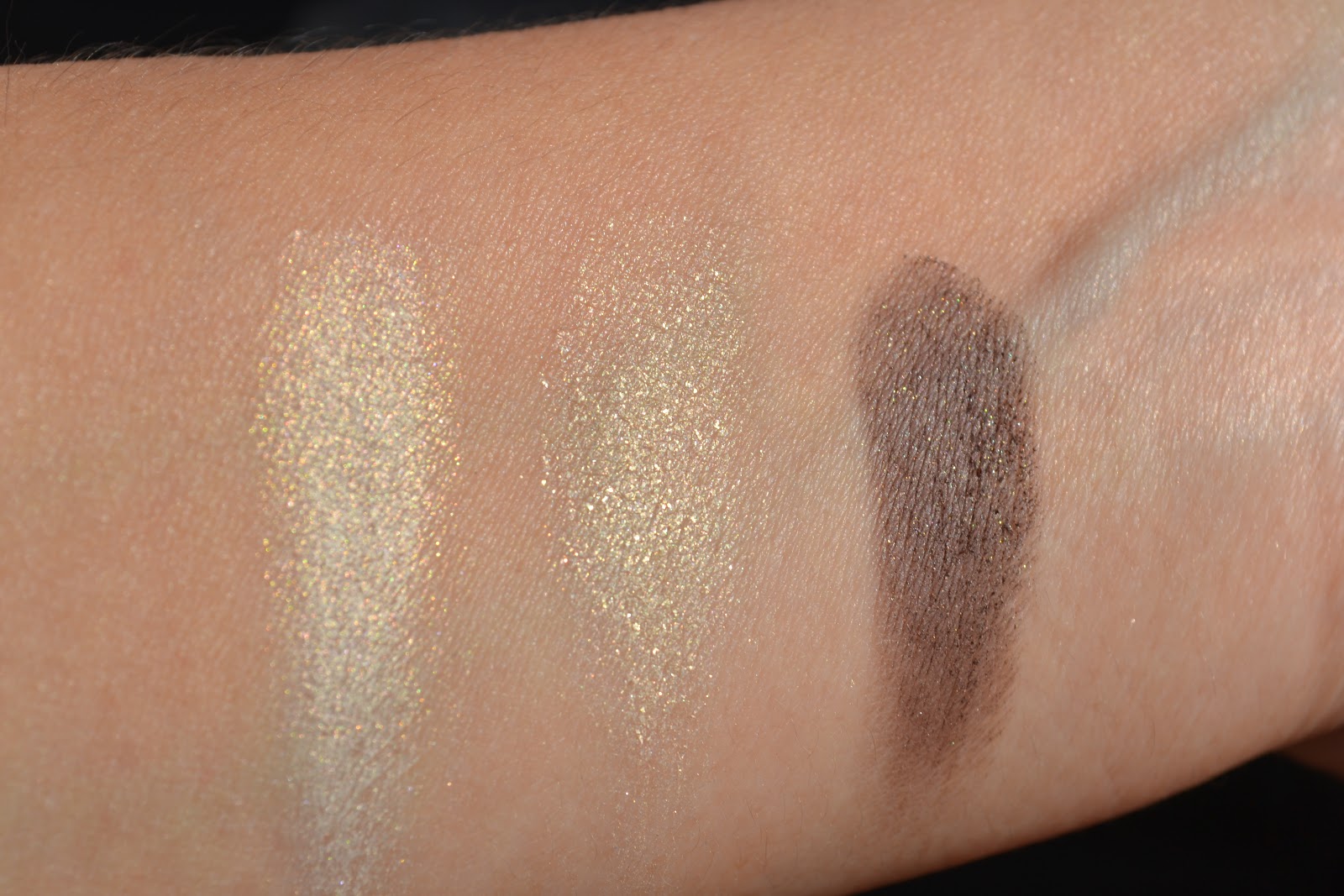 Las sombras son preciosas y sé que por 1 euro no puedo pedir más, pero se quedan en eso en lo bonitas que son, creo que no pigmentan muy bien y que son pelín tizosas . Por orden de izquierda a derecha son: la 43 mystic lemon de efecto holográfico, la 24 LOVE ME de efecto brillante y la 09 llamada GET READY! que es shimmer.