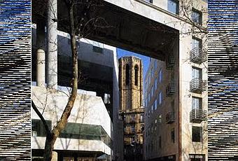 El fundamental arquitecto para Barcelona, Oriol Bohigas, junto con sus socios de MBM, diseñaron este servil edificio de las Ramblas. Más que un bloque de oficinas al uso, resulta una operación urbanística en toda regla, pues en vez de hacer una edificación de manzana, se decide abrir una calle que haga más presente al barrio gótico de la ciudad condal desde una de sus principales arterias. La nueva calle, no es sino una ventana que se abre en mitad de la avenida, por la cual ver la torre de la iglesia de Santa María del Pino, mientras con un vuelo en planta quinta, aporta la continuidad de fachada que merece una vía de semejante importancia.