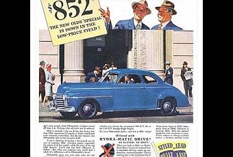 Anuncio Publicitario de ventas de automóviles marca Oldsmobile del año 1948, con un costo de $/.852.00, toda una oferta, que muchos clientes de clase media no podían adquirir en la República de Panamá.