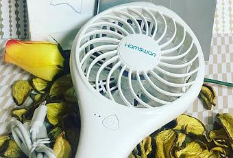 HAMSWAN Es un ventilador de mesa (aunque no se queda sujeto solo Es decir si quieres no tenerlo en la mano todo el tiempo y tienes que meterlo en algún lado (vaso, maceta o algo así). Es ligero, compacto y como tiene un pequeño tamaño lo podemos llevar en la mochila, o en el coche (si el a.acondicionado se os ha estropeado como es mi caso).