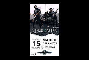 En este inicio del mes de noviembre podremos ver en Sala Vesta en Madrid el directo de Venus Astra, una nueva oportunidad de poder seguir conociendo en directo sus canciones. Esta fecha de Venus Astra en Madrid es, en muchos aspectos una forma de empezar una etapa, será en la Sala Vesta en unos días donde cerraron su anterior gira.Con un solo trabajo encontrábamos en Venus Astra parte de la referencia sonora de una formación que está situada entre Madrid y Castilla La Mancha, ahora este 15/1 en la Sala Vesta podríamos decir que quieren despedir el disco anterior pero a la vez presentarnos los nuevos temas que empezarán a salir en los próximos meses, en este directo prometen dar más de una sorpresa en su repertorio en la capital dejando espacio para el nuevo disco y más.