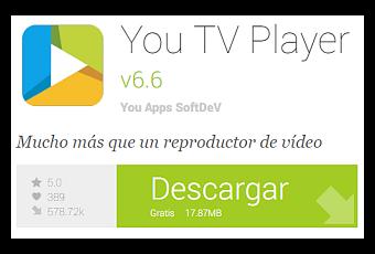A continuación todo Android online te da las opciones para poder ver tus series y programas de televisión favoritos incluso cuando estés fuera de casa. Con la lista de las mejores aplicaciones Android para ver la televisión te mostramos la siguiente:You TV PlayerYou TV Player es un reproductor de vídeo para Android que, con la correcta configuración, nos permitirá disfrutar de cientos de canales de vídeo en streaming directamente desde nuestro terminal.